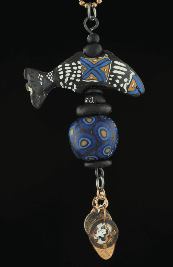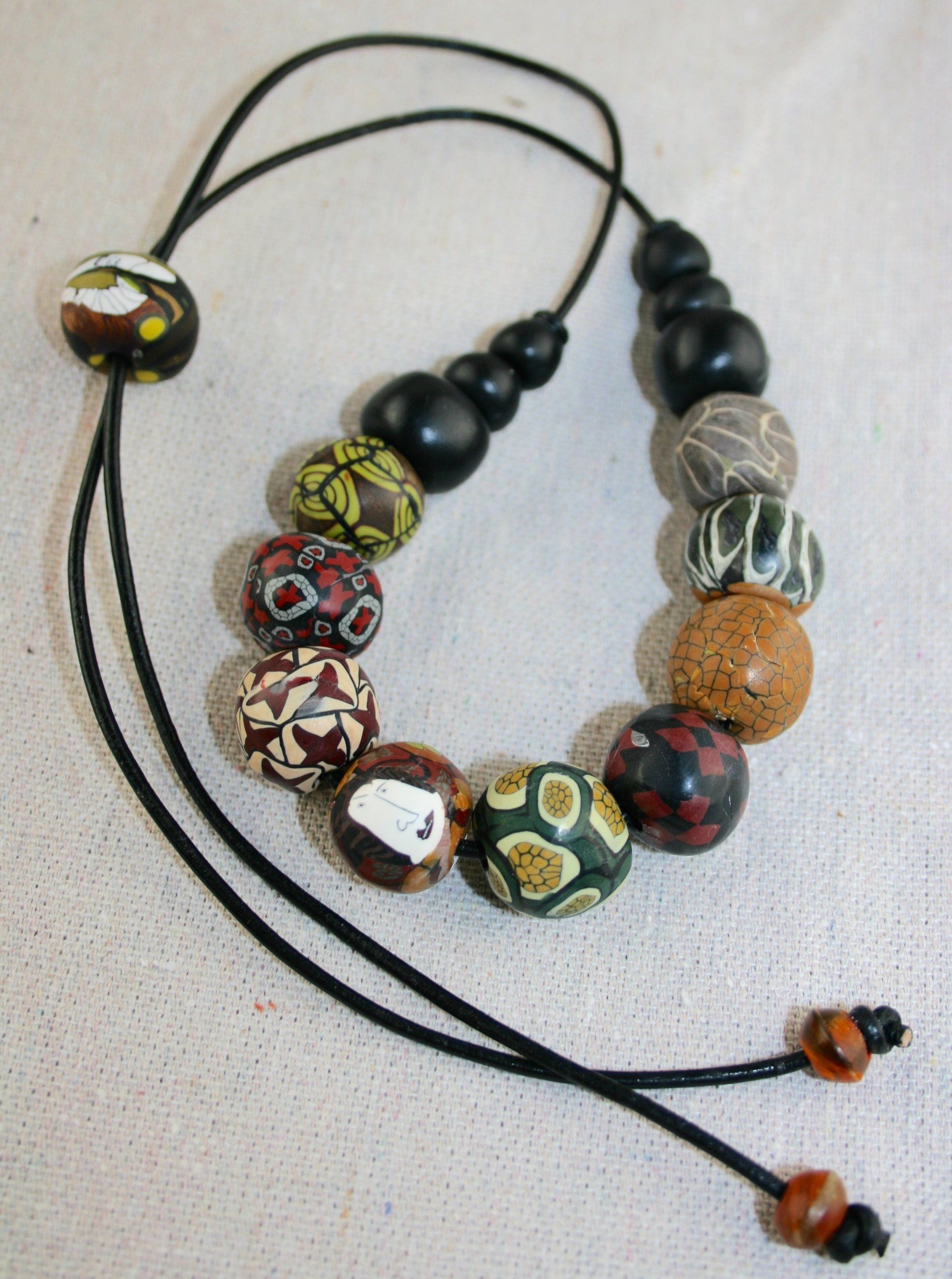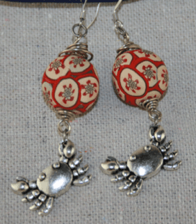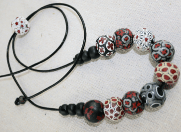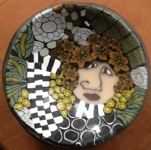 Handmade of polymer clay, lightweight, unique and eye-catching. Crafted using a “millifiori” technique (meaning “thousand flowers”) originally a Venetian glass working technique combining and folding thin rods of different colors to form “canes” which are sliced and layered in a collage to form an intricate pattern art work.